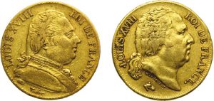 LOT de 2 MONNAIES de 20 FRANCS OR LOUIS XVIII .