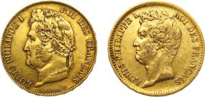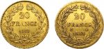 LOT DE 2 MONNAIES de 20 FRANCS OR LOUIS-Philippe. Tête nue 1831 A Paris 6,39 gr. et tête laurée 1848 A Paris 6,45 gr. G. 1030 et 1031.