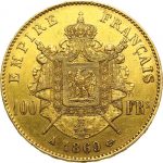 SECOND EMPIRE 1852-1870 100 FRANCS OR 32,24 gr. Napoléon III tête laurée, 1869 A Paris. G. 1136.