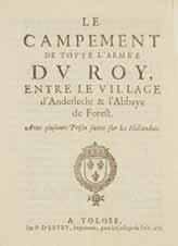 Toulouse - Impression de Le campement de toute l’armée du Roy, entre le village d’Anderlecht & l’abbaye de Forest. Avec plusieurs prises faites sur les Hollandois. Tolose, P. d’Estey, 1673. 4 pp. in-4 br.,