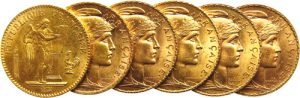 Troisième République 1871-1940 ENSEMBLE de 6 MONNAIES de 20 FRANCS OR : 20 FRANCS Génie 1871 A Paris G. 1063 et 20 FRANCS Marianne (5 ex.) G. 1064.