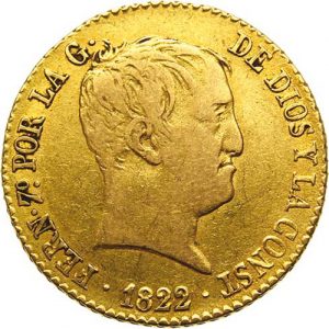 ESPAGNE. Ferdinand VII 80 réales OR,