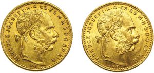 HONGRIE. LOT de 2 MONNAIES de 20 FRANCS, 8 forint 1885, 1890. Fr. 244.