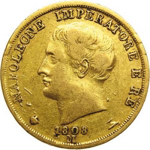 20 LIRE OR 6,38 gr. Napoléon Ier 1808 Milan.