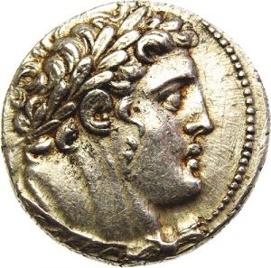 Buste lauré de Melkarth à dr.