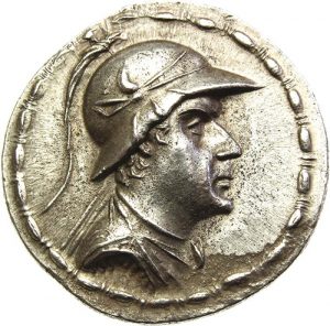 ROIS DE BACTRIANE. EUCRATIDES vers 180 Av. JC. Tétradrachme AR.