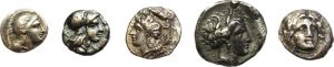 LOT de 5 MONNAIES divisionnaires grecques argent. Lot intéressant à étudier.