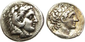 LOT de 2 MONNAIES grecques argent comprenant : Macédoine, Philippe III Aridée, tétradrachme 16,93 gr.