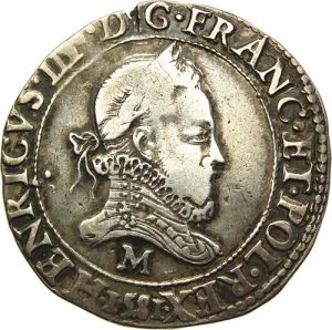 Henri III 1574-1589 Franc d’argent au col fraisé 1581 M Toulouse. Dup. 1130a. TB+.