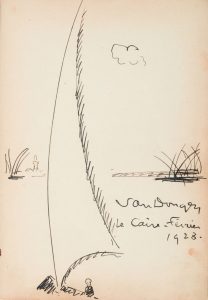 KEES VAN DONGEN (1877-1968) Felouque sur le Nil. 1928 Dessin à la plume à l’encre de chine sur papier, signé, daté et situé en bas à droite : Van Dongen- Le Caire-Février 1928.