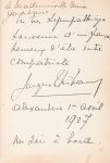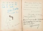 Fait partie d’un carnet de dédicaces autographes signées de personnalités artistiques et littéraires ayant voyagé entre Marseille et Alexandrie sur les bateaux Mariette Pacha et Champollion de 1924 à 1937. Un volume in-4° (21,5 x 14,5 cm), 16 feuillets de dédicaces suivis de plusieurs feuillets vierges. Signatures de : Francis Carco, Jacques Richepin, Pierre Benoit, Marie Bell, Alain Gerbault, Pierre Mac Orlan, Léon Bernard, Yvonne Hautin, G.Hanotaux, Yvonne Brothier, Gabrielle Robinne, Roland Dorgelés, Jacques Thibaud … Reliure de l’époque usagée , couverture détachée.