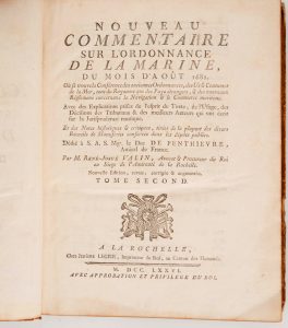 VAILIN (Josué) - Nouveau commentaire sur l'Ordonnance de la Marine du mois d'août 1681 […] Nouvelle édition revue, corrigée & augmentée. La Rochelle, Jérôme Légier. 1776.