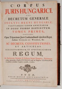 [WERBOCZI (Istvan)] - Corpus Juris Hungarici, Seu Decretum Generale Inclyti Regni Hungariae, Partiumque Eidem Annexarum in Duos Tomos Distinctum. (…) Budae, Typis Regiae Universitatis, Budae, 1779.