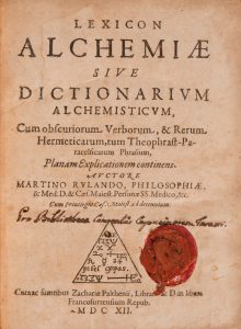 RULAND (Martin) - Lexicon alchemiae sive Dictionarium alchemisticum cum obscuriorum, verborum & rerum hermeticarum, tum theophrast Paracelsicarum Phrasium planam explicationem continens. Francfort, Zacharius Palthenius, 1612.