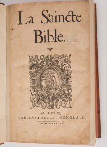 [ANONYME] - LA SAINCTE BIBLE [suivi de] Nouveau Testament de Nostre Seigneur Jésus Christ. Lyon, Barthelemi Honorati, 1578.