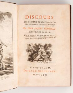 ROUSSEAU (Jean-Jacques) - Discours sur l'origine et les fondemens de l'inégalité parmi les hommes. Amsterdam, Marc Michel Rey, 1755.