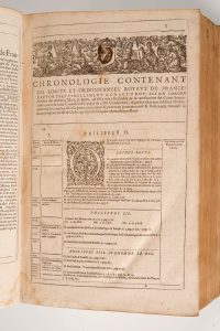Fouet et N. Buon, 1610. In-fol. (8ème édition). Demi-vélin postérieur. Absence de la page de titre. Quelques bandeaux et vignettes gravées. Toutes les représentations royales ont été abîmées. Bon état général.