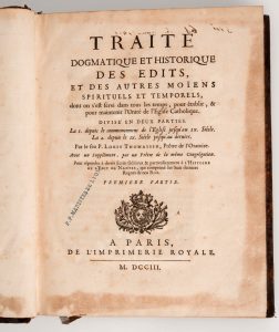 THOMASSIN (LOUIS). - Traité dogmatique et historique des Edits et des autres moïens spirituels et temporels dont on s’est servi dans tous les temps pour établir & maintenir l’Unité de l’Eglise Catholique […] avec un supplément par un...