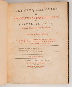 EON DE BEAUMONT (Charles d’). – LETTRES, mémoires & négociations particulières du Chevalier d’Eon (…) Imprimé chez l’Auteur, au Dépens du Corps Diplomatique et se vend à Londres chez Jacques Dixwell, 1764. In-4,...