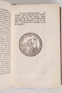 HUET (Pierre- Daniel). - Histoire du Commerce et de la Navigation des Anciens. Troisième édition. Paris, Coustelier, 1727. In-12. (16)-400p.(35). Plein veau. Dos à nerfs orné. Bon état. Ex-libris asiatique au tampon rouge.