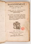 AVITY (Sieur d'). - Bannissement des folles amours. Lyon, Barthelémy Vincent, MDCXIIX [1618]. In-8, (2)-106p-(3). Cartonné. Bon état, travail de vers en marge aux premiers feuillets, annotations à l’encre en marge et page de garde. Ex-libris...