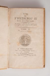 [LAVEAUX (J.-Ch. Thiébault de)]. - Vie de Frédéric II roi de Prusse, accompagnée de remarques, pièces justificatives et d'un grand nombre d'anecdotes dont la plupart n'ont point encore été publiées. Strasbourg et Paris, Treuttel, 1788. 4 vol....