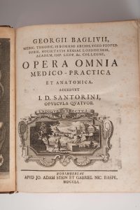BAGLIVI (Gorgio). - Opera Omnia Medico-Practica et Anatomica accedunt J. D. Santorini opuscula quatuor. Norimbergae, apud Jo. Adam Stein et Gabriel Nic Raspe. 1751. In-4, 64p-855p -39-[11]-854-[2] pages, pleine basane, dos à nerfs orné. Illustré...
