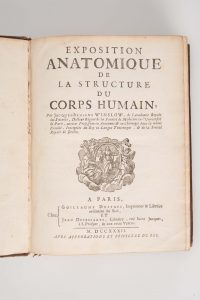WINSLOW (Jacques Bénigne). - Exposition anatomique de la structure du corps humain. Paris, Desprez et Desessartz, 1732. In-4, xxx-740p-(4). Pleine basane, dos à nerfs ornés. 4 planches dépliantes. ÉDITION ORIGINALE du meilleur ouvrage d'anatomie...