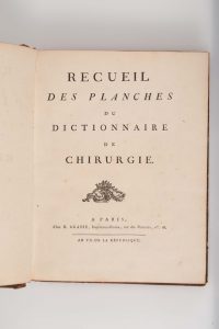 [Encyclopédie Méthodique]. - Dictionnaire de Chirurgie - Recueil de Planches. Paris, H. Agasse, An VII. [1799]. In-fol. Plein veau, dos lisse orné. Page de faux-titre, page de titre et 111 planches gravées dont 3 double, numérotés jusqu’à...