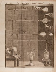 Illustré de 12 planches gravées dépliantes. J.-A. Nollet (1700-1770), qui avait été l'élève de Réaumur et collaborateur du savant du Fay, avait ouvert à Paris, un cabinet de physique où il pratiquait ses expériences en direct.