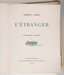 CAMUS (Albert) – [SADEQUAIN]. - L'Etranger. Paris, Les Bibliophiles de l'automobile-club de France, 1966.