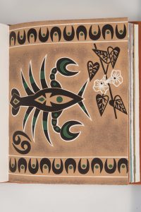 In-4, 205p. Reliure d'Editeur en plein maroquin havane, dos lisse, 1er plat orné en tête et en pied de 2 frises à la grecque en incrustation et d'un disque en cuivre réalisés par l'Artiste, incrusté en médaillon, tête dorée, sous chemise et étui de l'Editeur.