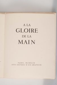 BACHELARD-ELUARD-LESCURE-MONDOR-PONGE-SOLIER-TZARA-VALERY. - A la gloire de la main. Paris, Au Dépens d'un Amateur, 1949.
