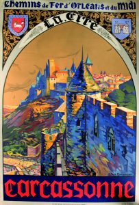 CHEMIN DE FER D'ORLEANS ET DU MIDI CARCASSONNE 100 x 62 cm