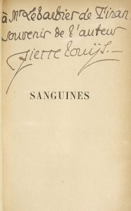 LOUYS (Pierre) - Sanguines. Paris, Bibliothèque-Charpentier, Eugène Fasquelle, 1903.