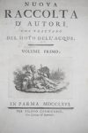 An important collection of scientific works by Giovanni Belgrado, with seven letters of Galileo Galilei, a source of considerable importance for the history of hydrodynamics. Gathered studies of B. Castelli, O. Corsini, F. Cesarini, G. Montanari, V. Viviani, GD Cassini, D. Guglielmini, G. Grandi, G. Poleni, Manfredi E., B. Zendrini, E. Bolognini, T. Narducci, A. Lecchi, A.M. Lorgna, P. Frisi, and others. The writings, accompanied by an impressive selection of illustrations, concerns irrigation systems, canalization and harnessing. Work of great importance for the history of drainage in different Italian regions: the Po Delta, the Pontine Marshes, the Maccarese, Fucecchio, the Ravenna.