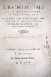 ARCHIMEDES. Archimedis de iis quae vehuntur in Aqua Libri Duo. A’ Federico Commandino Urbinate in pristinum nitorem restituti, et commentariis illustrati. Bologna, Alessandreo Benacci, 1565