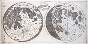 FIRST EDITION. The first volume contains the treatise on astronomy in three books, the other two contain tables with the Ephemerides from 1641 to 1700. The table out of text engraved in copper in the first volume depicts the two hemispheres of the moon with their findings.