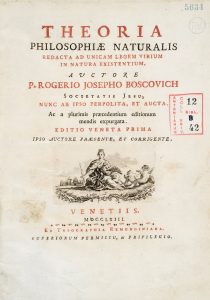 BOSCOVICH, Ruggero Giuseppe. Theoria Philosophiae Naturalis ad Unicam Legem Virium in Natura existentium. Venezia, REMONDINI, 1763
