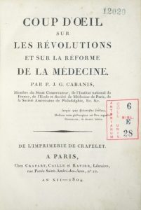 CABANIS Pierre-Jean-George. Coup d'Oeil sur les Révolutions et sur la Réforme de la Médecine. Paris, Crapelet, An XII - 1802.