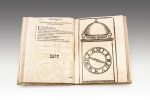 4to, mm. 202x152;contemporary stiff velum binding with titles impressed in black ink within the label on the spine, sprayed edges; pp. 8 not numbered, including Frontespiece, 72; many illustrations of clocks and gears within the text, 20 at full page. Fine specimen.