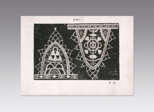 FIRST EDITION. Important book of models and designs of embroidery, from different reasons, precious testimony of a tradition actually born in Italy in the early sixteenth century; these models have been the reference iconography not only in the Venice area, where was the historic art of lacemaking, but throughout Italy. The practical use that was made of these books, which often were dismembered and whose models were perforated to carry the design on the fabric, makes it particularly rare and precious the fact to find them in a state of completeness and of good conservation.