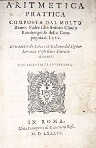CLAVIUS, Christophorus. Aritmetica prattica... tradotta da Latino in Italiano dal Signor Lorenzo Castellano Patritio Romano. Roma, Domenico Basa, 1586.