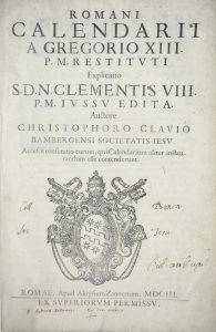 CLAVIUS, Christophorus. Romani Calendarii a Gregorio XIII. P.M. restituti Explicatio S.D.N. Clementis VIII. P.M. iussu edita. Roma, Luigi Zanetti, 1603