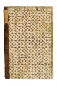 Small 8vo, mm. 145x95; Contemporary REMONDINI binding, hardcover decorated with woodcut sown of stars and points in gold on white ivory ; pp. 8, 62, 2; ornaments on Titlepage, Round type.