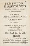 DA PONTE, Lorenzo. Bertoldo e Bertoldino, dramma giocoso per musica da rappresentarsi nel Teatro dell’Illustrissima Città d’Alessandria in occasione della Fiera d’Aprile, e Maggio dell’anno 1791. Alessandria, nella Stamperia d’Ignazio...