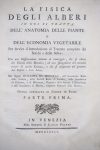 DUHAMEL DE MONCEAU, H. L. La Fisica degli Alberi.Venezia, Palese, 1774.