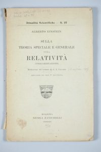 EINSTEIN, Albert. EINSTEIN, Albert. Sulla teoria speciale e generale della relatività.Bologna, Zanichelli, [1921].
