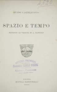 [EINSTEIN] CASTELNUOVO, Guido. Spazio e tempo secondo le vedute di Einstein. Bologna, Zanichelli, [1923].