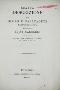 Descrizione del globo aereostatico di madamigella Elisa Garnerin.[Padova, presso i fratelli Gamba libraj editori]